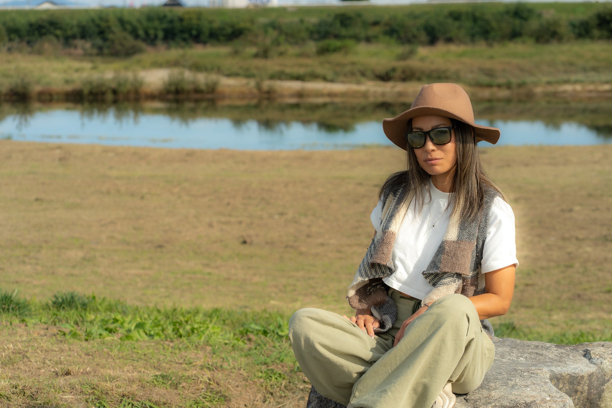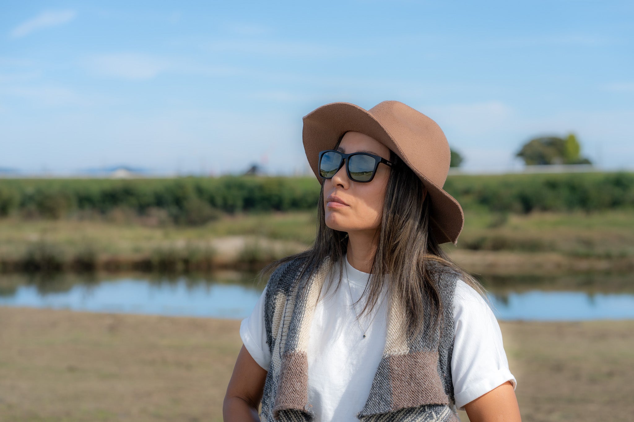 落ち着いたトーンのべっ甲柄に薄めのグリーン系レンズを搭載したタウンにもアウトドアにもマッチするデザイン。